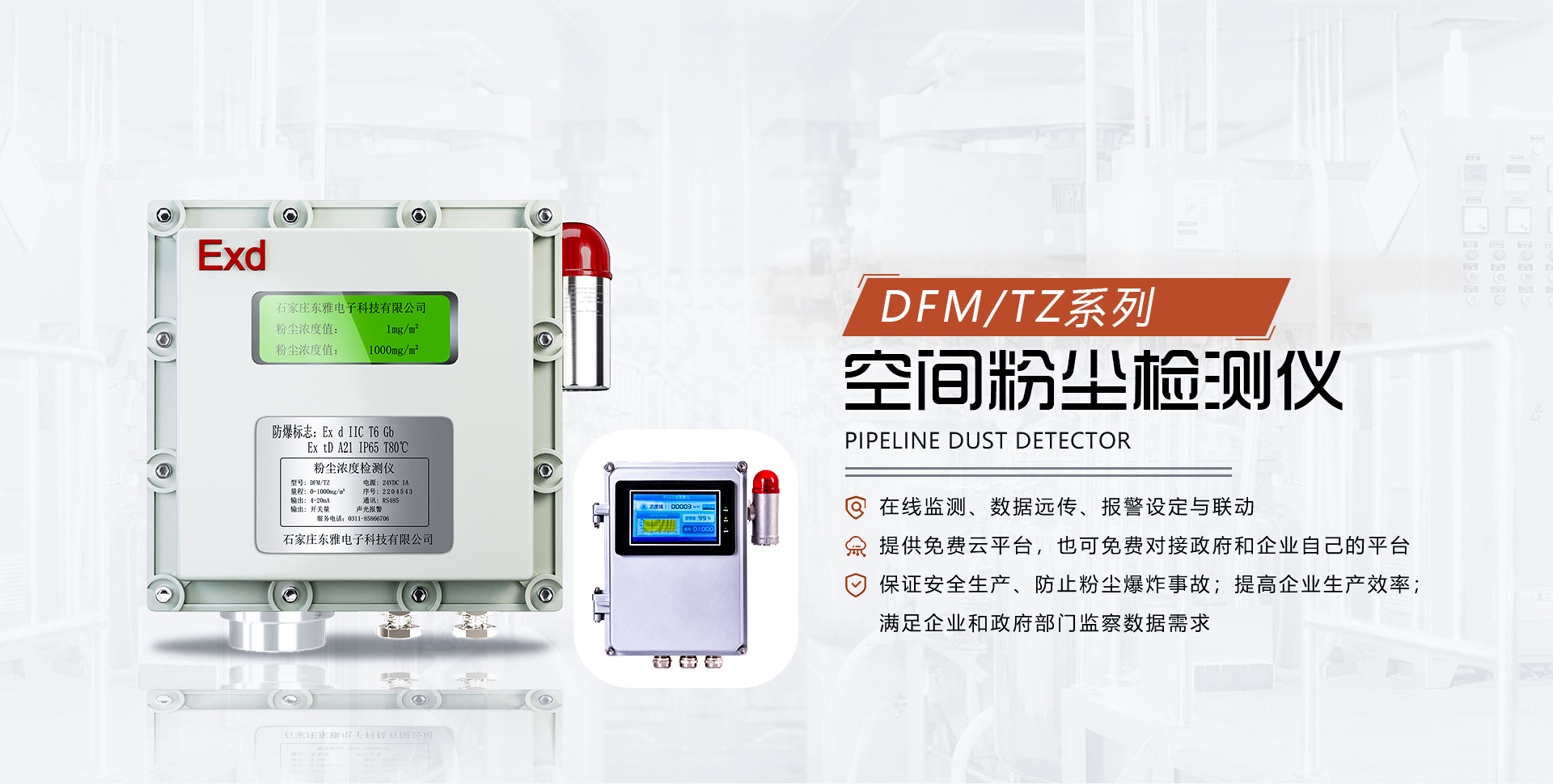 石家莊東雅電子科技有限公司致力于固體物料測量領域新技術的開發應用及新產品的生產銷售。我公司自成立以來以可靠的產品質量和性能,贏得了良好的口碑,已成為專業領域的后起之秀。石家莊東雅電子科技有限公司長久以來不斷致力于粉塵檢測領域。公司產品:各種型號的粉塵濃度檢測儀、固體流量計、粉體流量計、布袋檢漏儀等產品,產品廣泛應用于各種工業用途...